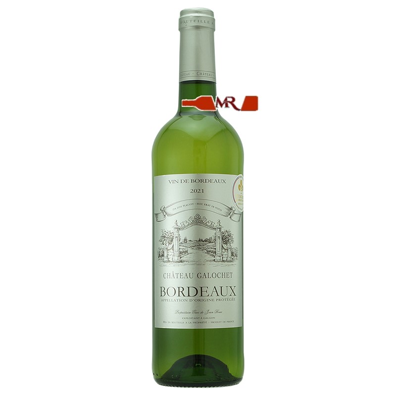 Rượu vang trắng Chateau Galochet Bordeaux là một loại rượu vang trắng nổi tiếng từ vùng Bordeaux, Pháp. Được làm từ các giống nho trắng chủ đạo của vùng Bordeaux như Sauvignon Blanc và Sémillon, chai rượu vang này có màu trắng xanh rực rỡ cùng với hương thơm tinh tế của trái cây nhiệt đới,vị chua nhẹ nhàng, tươi mát. Đây là một loại rượu vang trắng Bordeaux tinh tế và cân bằng.